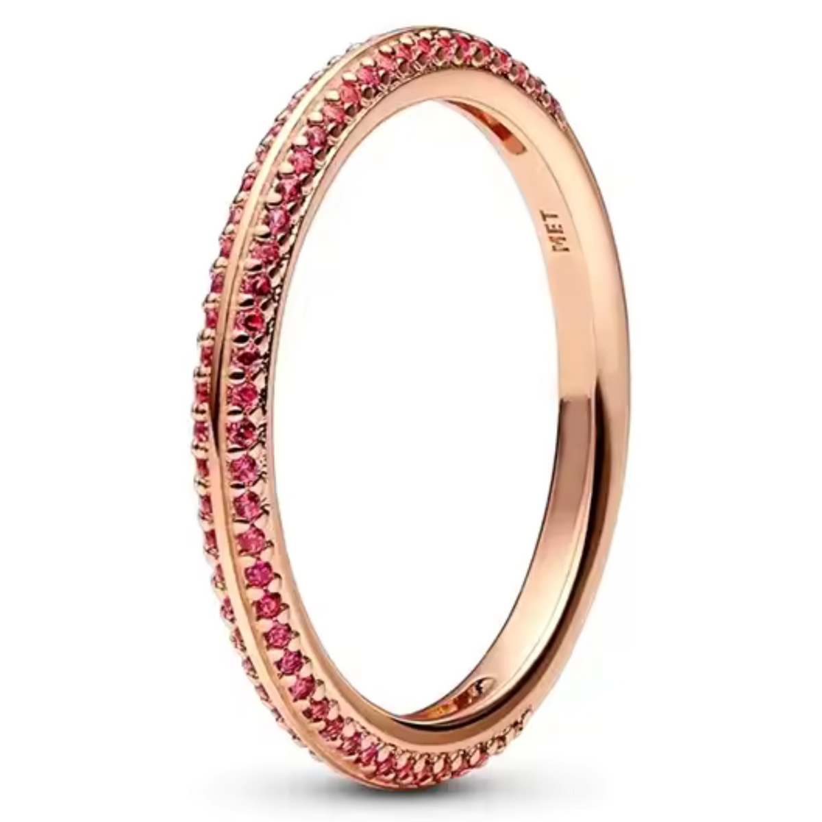 Bague Fine Rose Gold avec Strass Rouges et Roses – Élégance Colorée et Raffinée