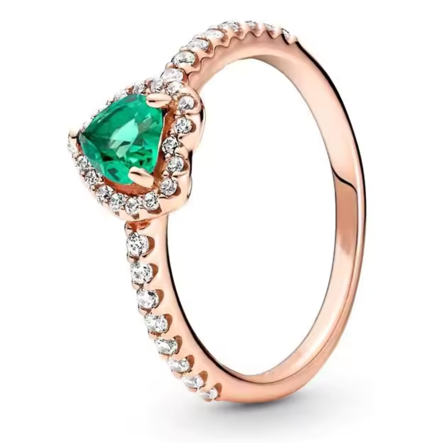 Bague Rose Gold avec Strass et Brillant Vert en Forme de Cœur – Élégance Naturelle et Raffinement