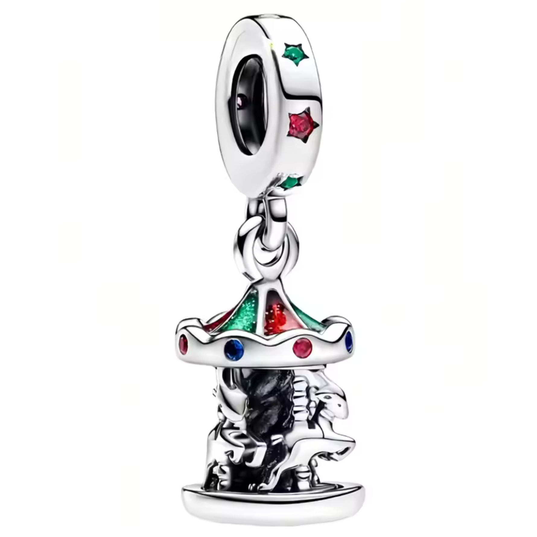 Revivez l'émerveillement des fêtes foraines avec ce charm Carrousel Rouge et Vert. En argent 925, il arbore des touches colorées pour une finition joyeuse et festive.