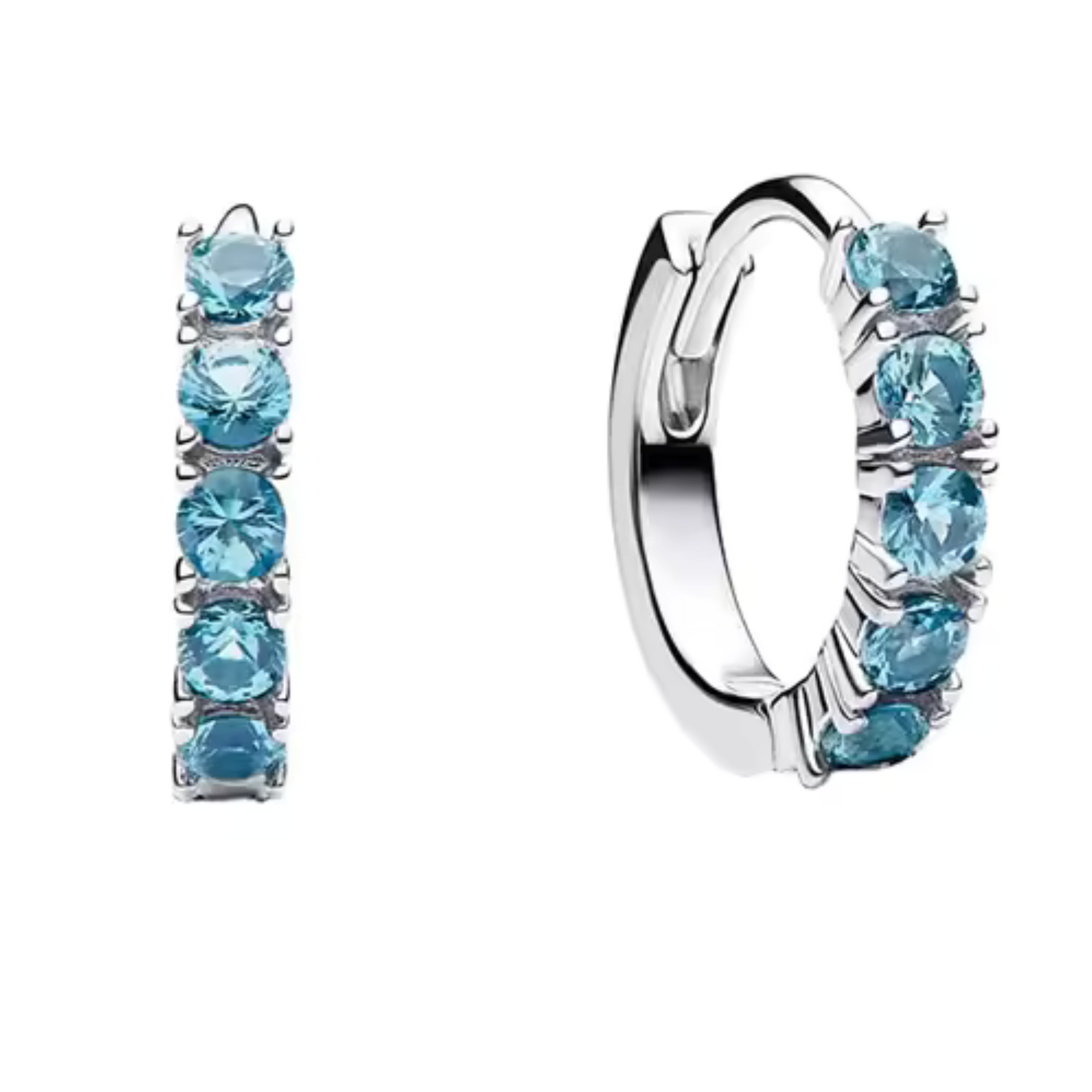 Boucles d’Oreilles Argentées avec Strass Bleu – Élégance Scintillante