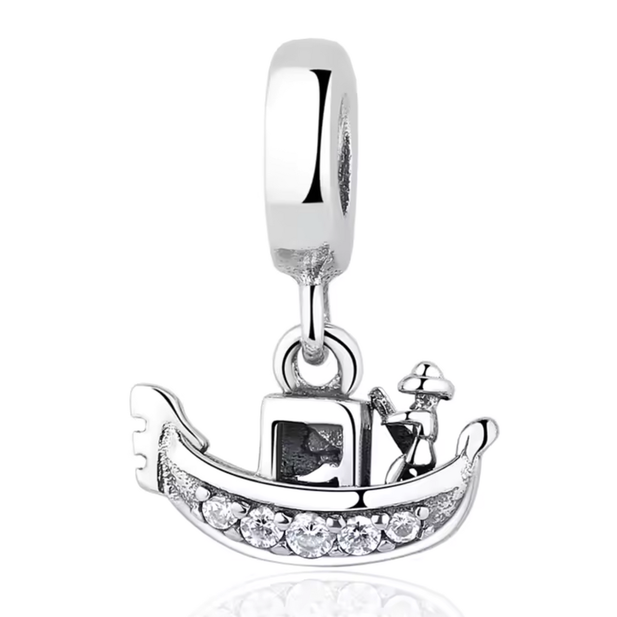 Embarquez pour un voyage romantique à travers les canaux de Venise avec ce magnifique charm en forme de gondole. Fabriqué en argent 925, ce bijou délicat représente une gondole vénitienne finement sculptée, emblème de la ville italienne et de son charme intemporel.