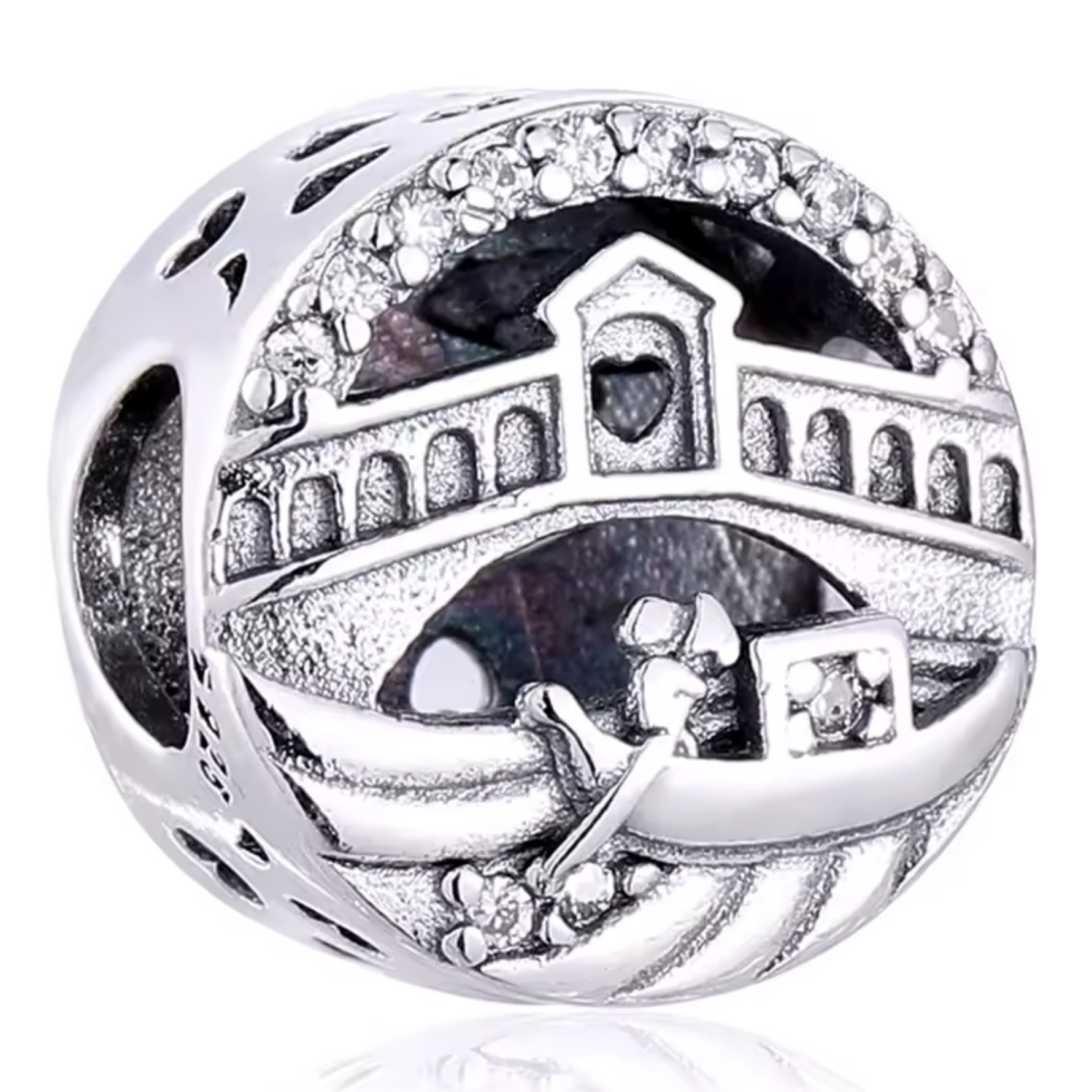 Plongez dans l’élégance et le romantisme de la Cité des Doges avec ce somptueux charm représentant Venise. Fabriqué en argent 925, ce bijou raffiné capture l’essence de la ville italienne à travers des détails emblématiques tels qu’une gondole ou encore un pont vénitien, symboles du charme et du mystère de Venise.