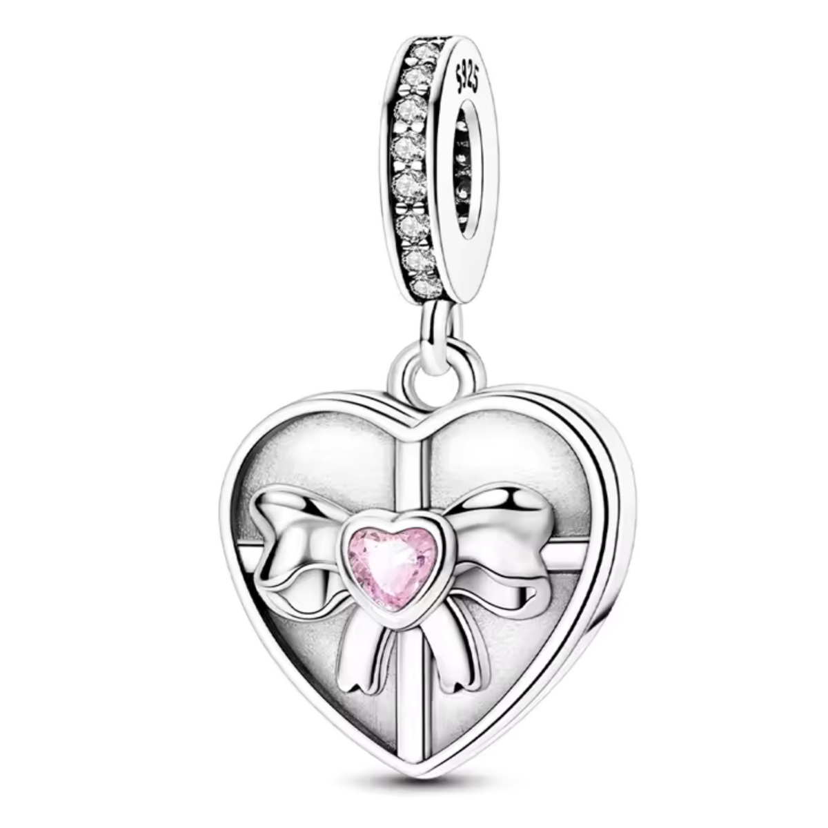 Laissez-vous séduire par ce charm en forme de cœur délicatement emballé, évoquant un précieux cadeau. Finement sculpté en argent 925 et sublimé par des détails soignés, ce bijou incarne surprise, tendresse et affection.