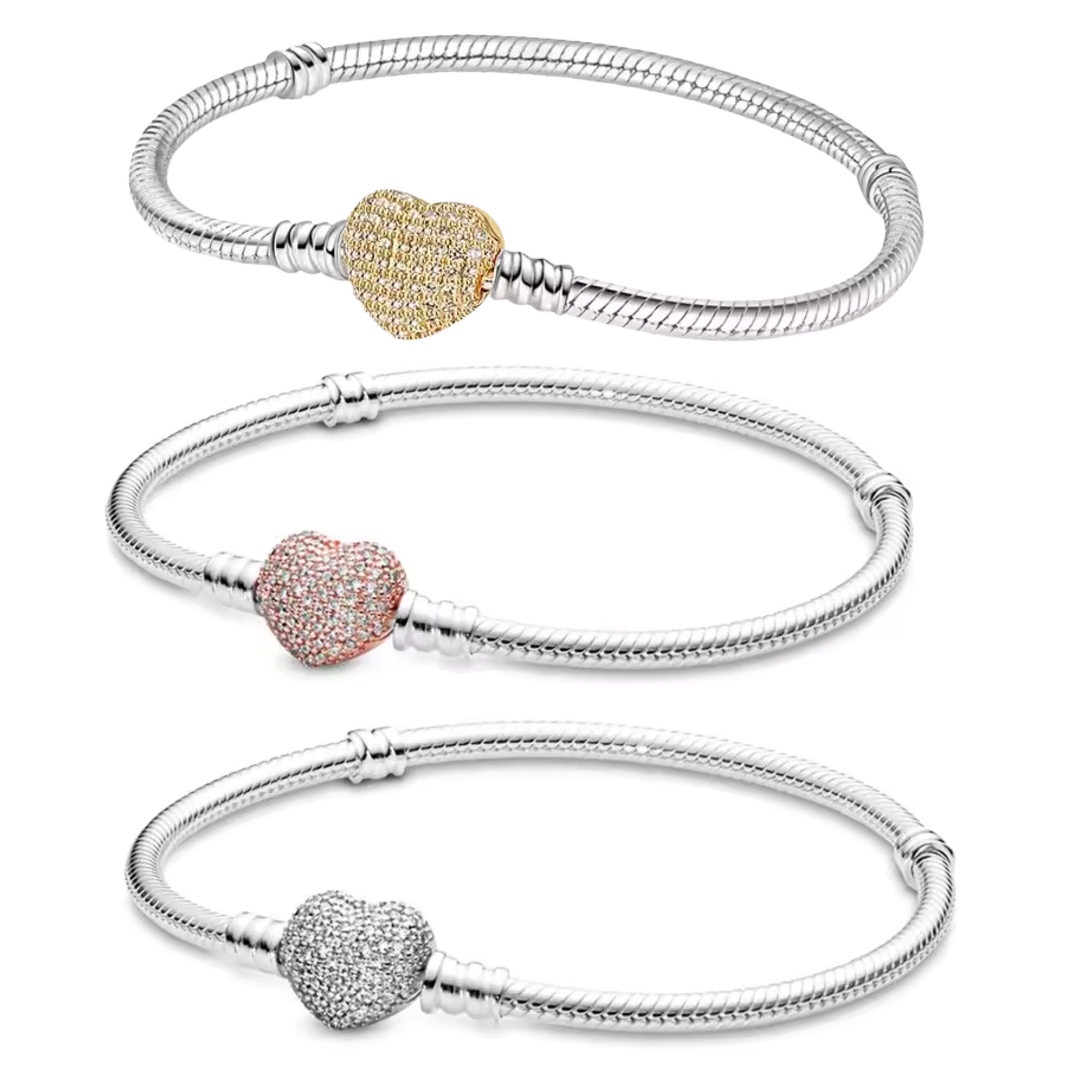 Bracelet Cœur à Strass – Rose, Bleu, Argenté ou Doré