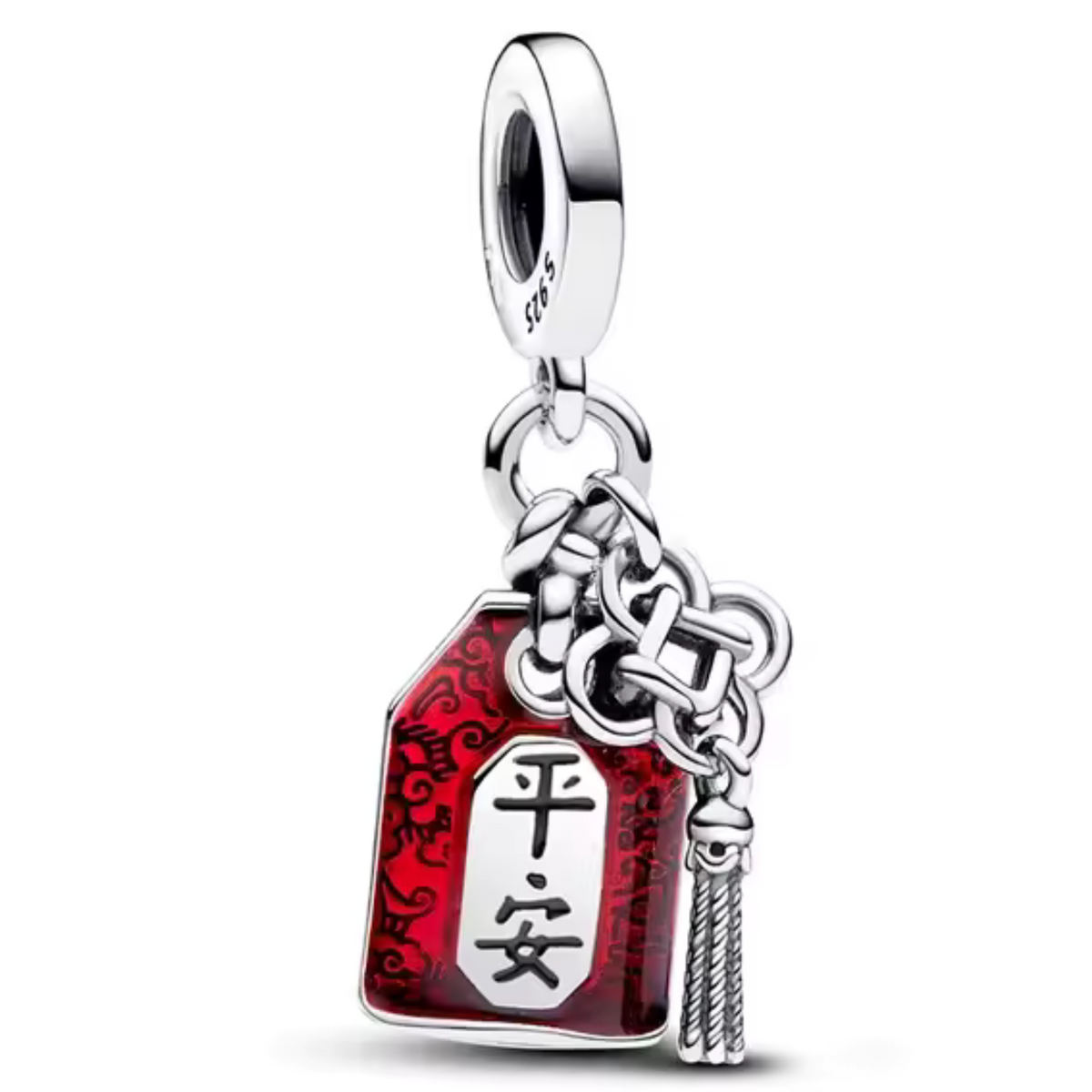 Laissez-vous séduire par ce magnifique charm suspendu en argent 925, inspiré des talismans traditionnels chinois. Orné d’un pendentif en émail rouge profond, il arbore l’inscription chinoise "平安", signifiant paix et sérénité, un symbole fort de protection et d’harmonie.