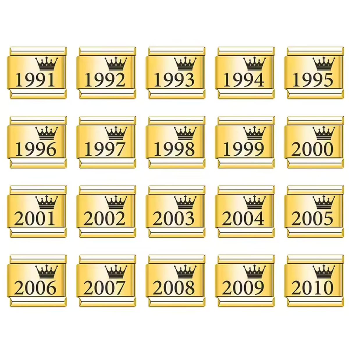 Ce charm italien doré représente une année, disponible de 1990 à 2010, parfait pour commémorer un moment spécial ou une date importante. Fabriqué en acier inoxydable de haute qualité avec une finition dorée élégante, il allie robustesse et raffinement pour un rendu chaleureux et intemporel. Facile à fixer, il s’adapte parfaitement à nos bracelets composés de 17 maillons extensibles et réglables, convenant à toutes les tailles de poignet. Compatible avec tous nos charms italiens, ce bijou symbolique est idéal pour personnaliser votre bracelet avec une touche dorée pleine de souvenirs.