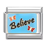 Charm Italien Argenté – “Believe” sur fond bleu avec papillon