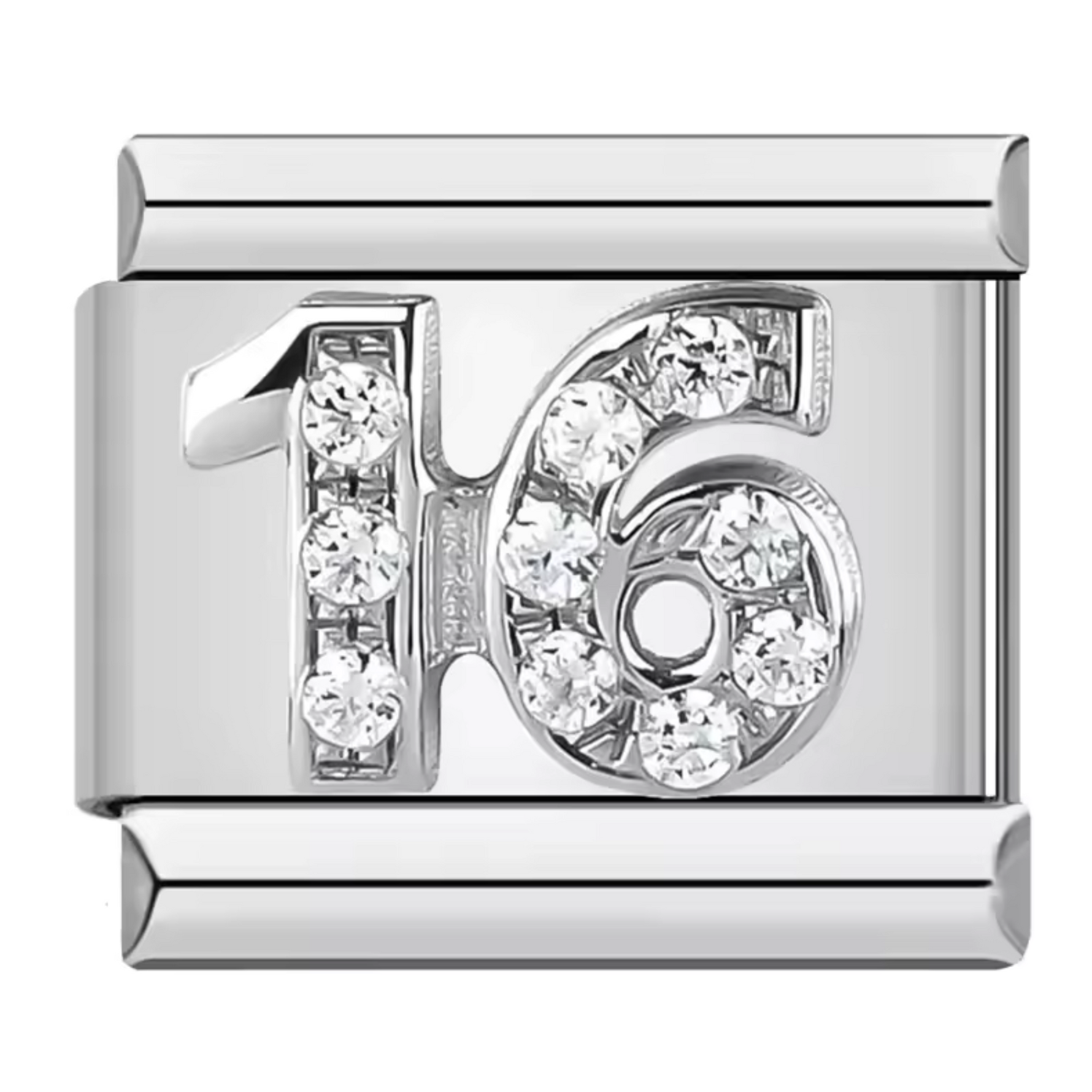 Charm Italien Argenté – Chiffre 16 avec Strass