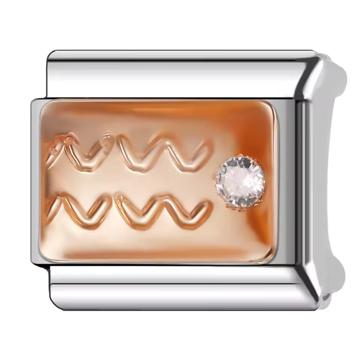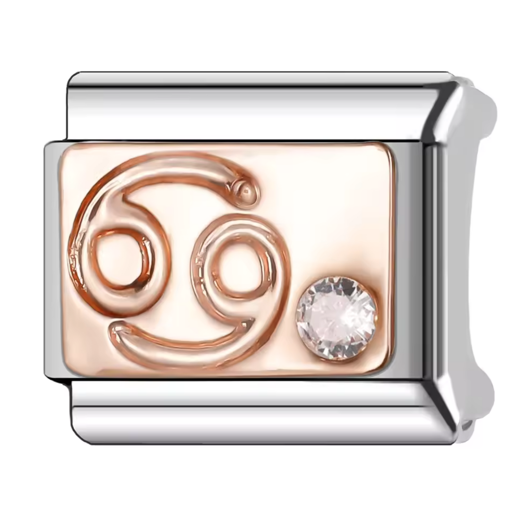 Ce charm italien allie une finition argentée élégante à des détails en couleur or rose pour représenter votre signe astrologique avec raffinement. Fabriqué en acier inoxydable de haute qualité, il offre robustesse et éclat durable pour un bijou intemporel. Facile à fixer, il s’adapte parfaitement à nos bracelets composés de 17 maillons extensibles et réglables, convenant à toutes les tailles de poignet. Compatible avec tous nos charms italiens, ce bijou est idéal pour personnaliser votre bracelet avec une touche céleste et élégante.