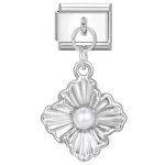Charm Italien – Argenté Fleur avec Perle Centrale