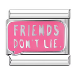 Charm Italien Argenté – “Friends don’t lie” dans une Bulle de Texte Rose
