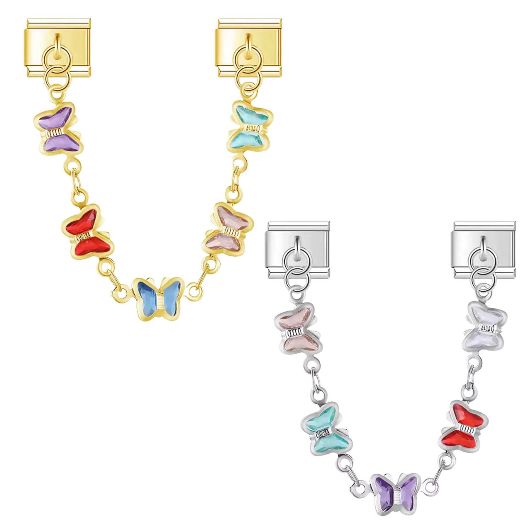 Charm Italien – Chaîne Dorée ou Argentée avec Papillon Coloré