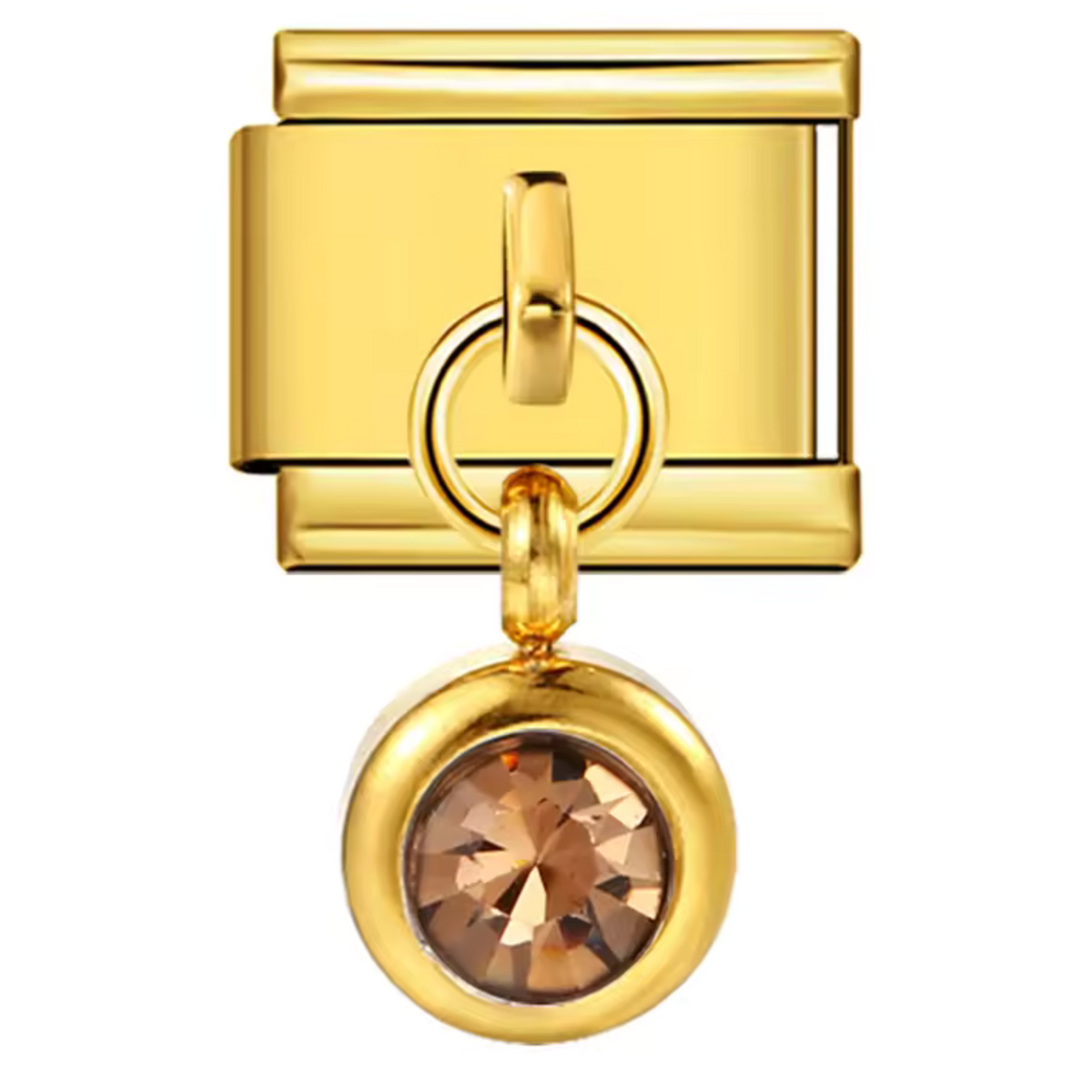 Ce charm italien couleur doré sublime l’éclat naturel d’une pierre de naissance délicatement sertie, pour un bijou à la fois élégant et chargé de symbolisme. La finition dorée chaude et brillante confère au charm une allure luxueuse et raffinée, parfaite pour apporter une touche précieuse à votre bracelet ou collier.