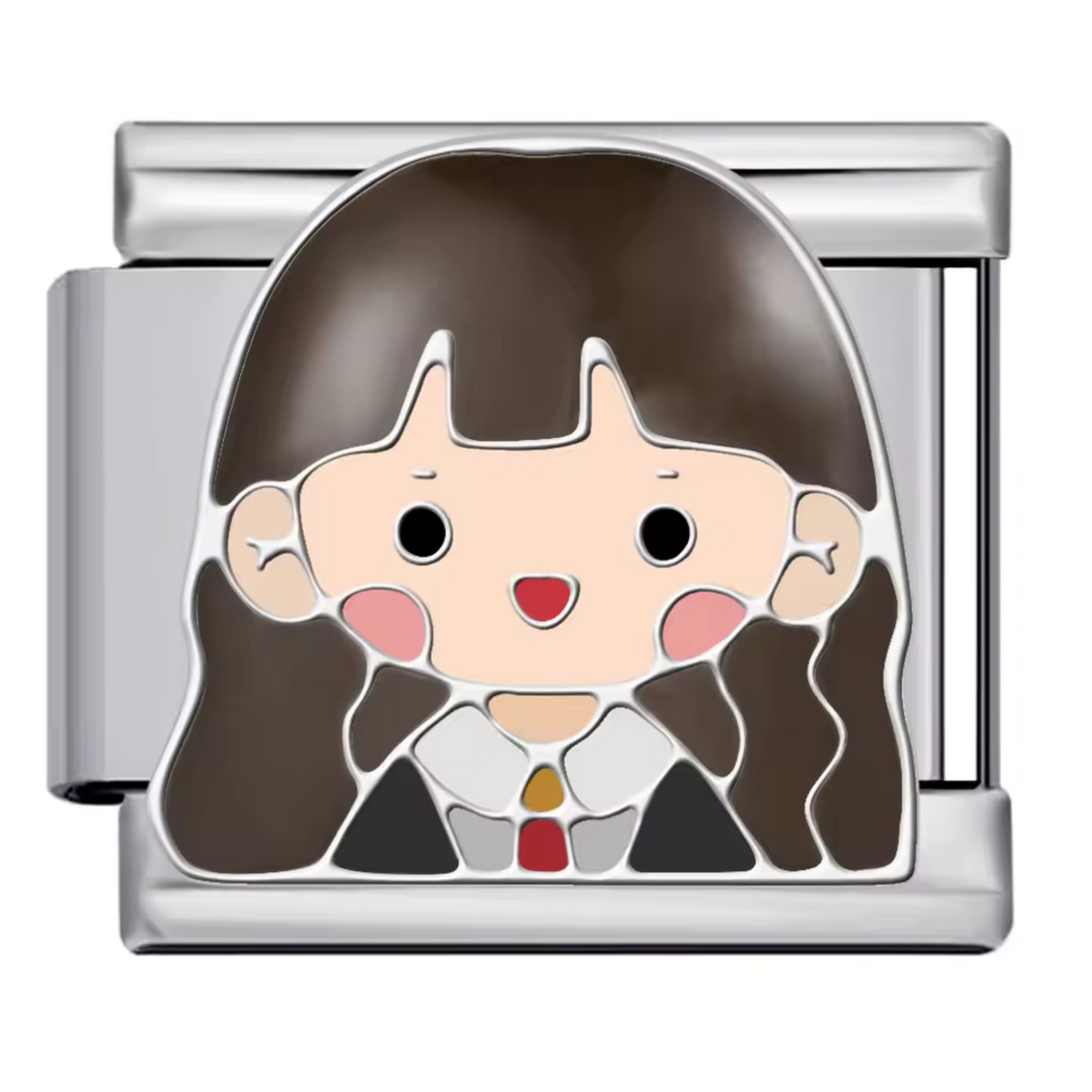 Ce charm italien élégant représente Hermione Granger, l’intelligente et courageuse sorcière de l’univers Harry Potter, reconnaissable à ses cheveux bouclés et son air déterminé. Confectionné en acier inoxydable argenté de haute qualité, il se distingue par des détails finement travaillés et une finition brillante qui séduiront tous les fans de la saga. Facile à fixer, il s’adapte parfaitement à nos bracelets composés de 17 maillons extensibles et réglables, adaptés à tous les poignets. Compatible avec tous nos charms italiens, ce bijou est parfait pour apporter une touche de sagesse et de bravoure à votre collection.