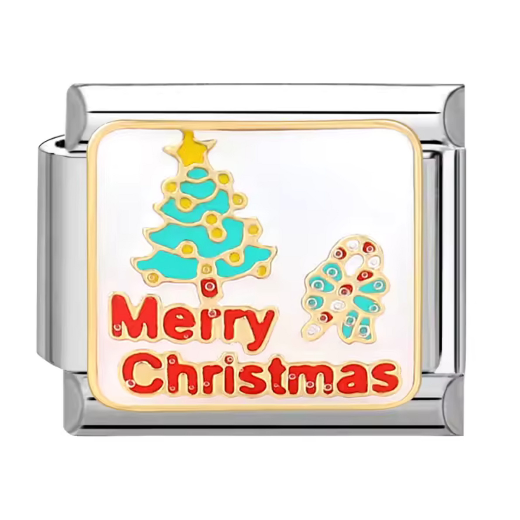 Célébrez la magie de Noël avec ce charm italien “Merry Christmas”, disponible en finition argentée ou dorée. Fabriqué en acier inoxydable de haute qualité, ce bijou allie robustesse et élégance festive. Que vous choisissiez l’éclat argenté ou la brillance dorée, il s’adapte parfaitement à nos bracelets composés de 17 maillons extensibles et réglables, convenant à toutes les tailles de poignet. Compatible avec tous nos charms italiens, ce charm apporte une touche joyeuse et raffinée à votre bracelet pour les fêtes de fin d’année.
