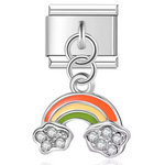 Ce charm italien pendentif arbore un arc-en-ciel délicatement réalisé en finition argentée, sublimé par des couleurs vives et joyeuses. Fabriqué en acier inoxydable de haute qualité, il allie robustesse et détails soignés pour un rendu lumineux et plein de gaieté. Facile à fixer, il s’adapte parfaitement à nos bracelets composés de 17 maillons extensibles et réglables, convenant à toutes les tailles de poignet. Compatible avec tous nos charms italiens, ce bijou coloré est idéal pour apporter une touche de bonheur et de fraîcheur à votre bracelet personnalisé.