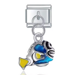 Ce charm italien pendentif argenté représente le célèbre poisson bleu Dory, symbole de joie et d’aventure sous-marine. Fabriqué en acier inoxydable de haute qualité avec une finition argentée brillante et des détails colorés soigneusement appliqués, il allie robustesse et fantaisie. Facile à fixer, il s’adapte parfaitement à nos bracelets composés de 17 maillons extensibles et réglables, convenant à toutes les tailles de poignet. Compatible avec tous nos charms italiens, ce bijou original est idéal pour apporter une touche ludique et marine à votre bracelet.