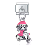 Charm Italien Pendentif Argenté – Fille sur Scooter