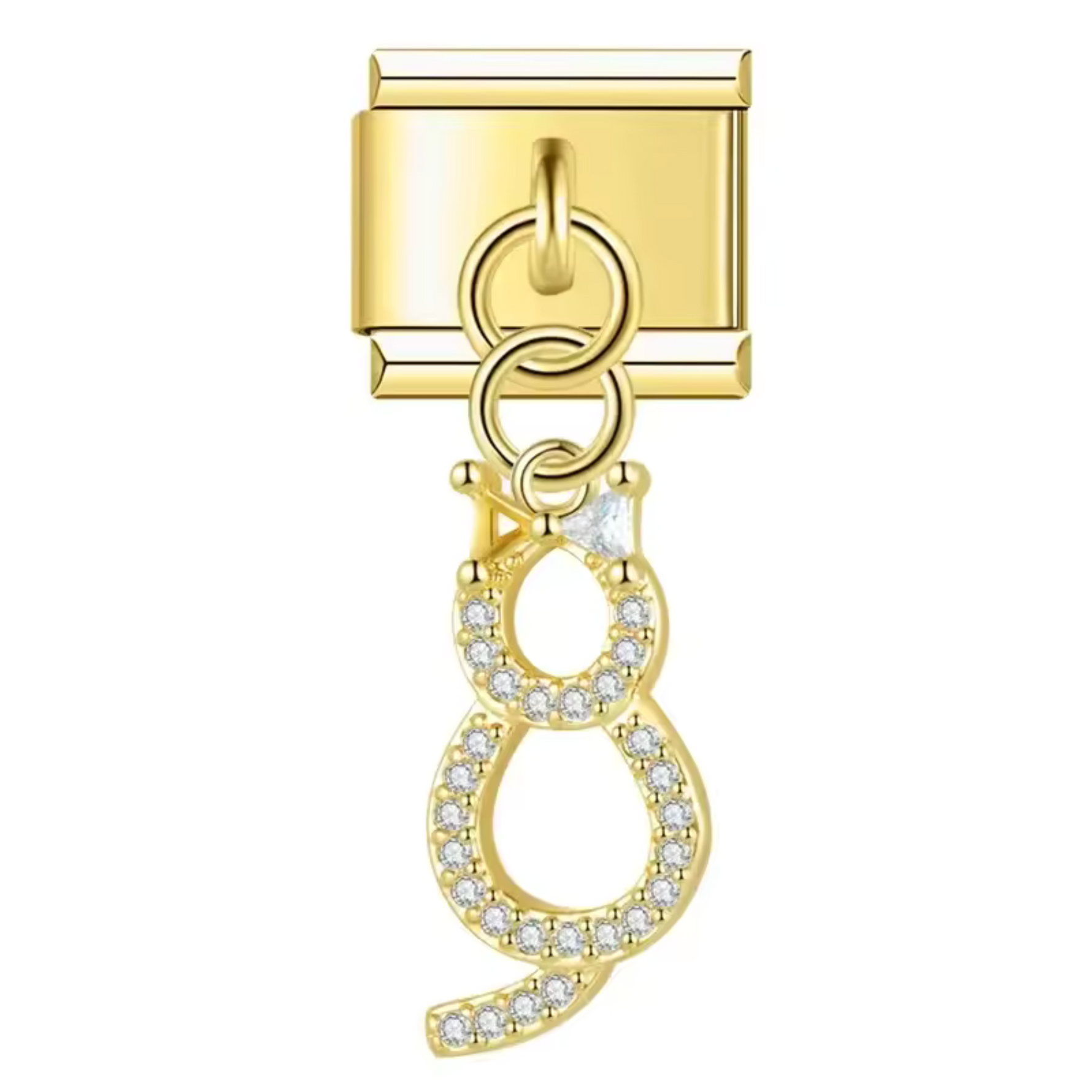 Ce charm italien pendentif, disponible en version argentée ou dorée, représente un adorable chat stylisé, symbole d’élégance, d’indépendance et de douceur. Fabriqué en acier inoxydable de haute qualité avec une finition brillante, il combine finesse et solidité. Facile à fixer, il s’adapte parfaitement à nos bracelets composés de 17 maillons extensibles et réglables, convenant à toutes les tailles de poignet. Compatible avec tous nos charms italiens, ce bijou raffiné est parfait pour personnaliser votre bracelet avec une touche féline et originale.