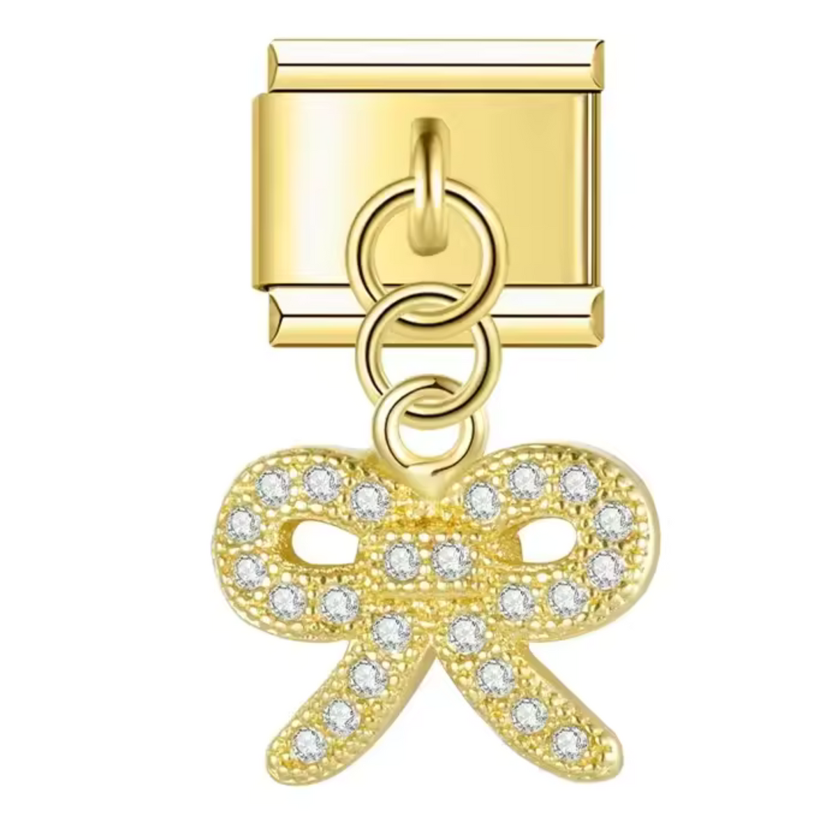Ce charm italien pendentif délicat représente un joli nœud, disponible en finition couleur or rose, argentée ou dorée, pour s’adapter à tous les styles. Fabriqué en acier inoxydable de haute qualité, il allie robustesse et élégance avec une finition soignée et brillante. Facile à fixer, il s’adapte parfaitement à nos bracelets composés de 17 maillons extensibles et réglables, convenant à toutes les tailles de poignet. Parfait pour personnaliser votre bracelet avec une touche féminine et chic.