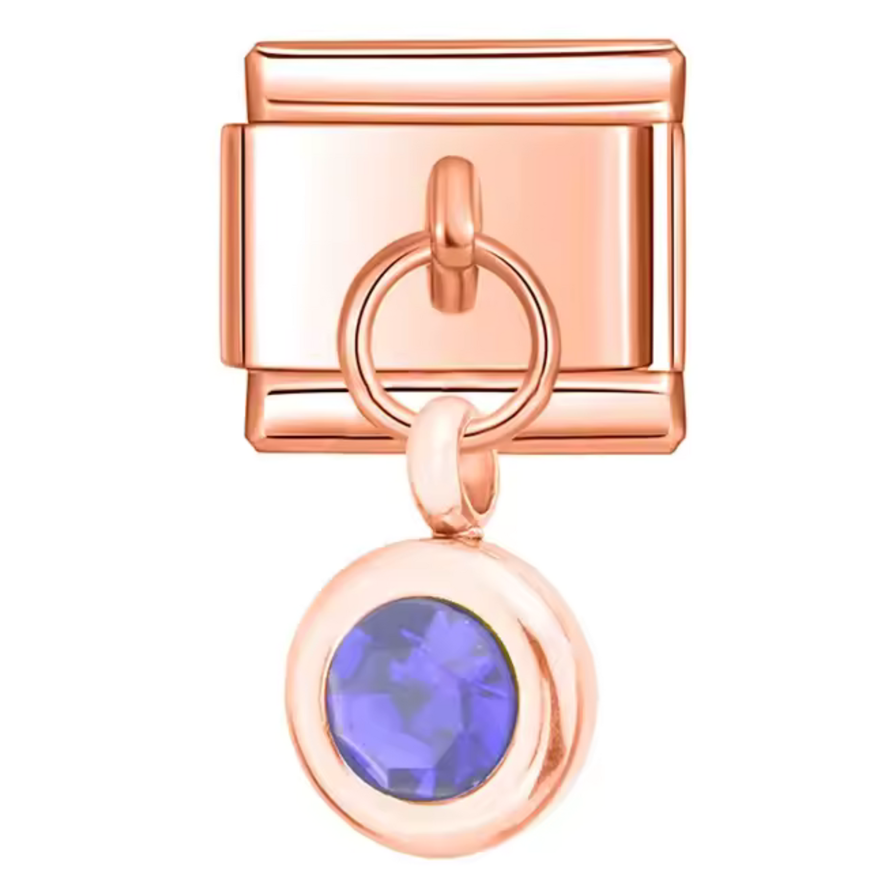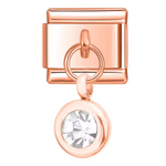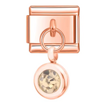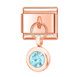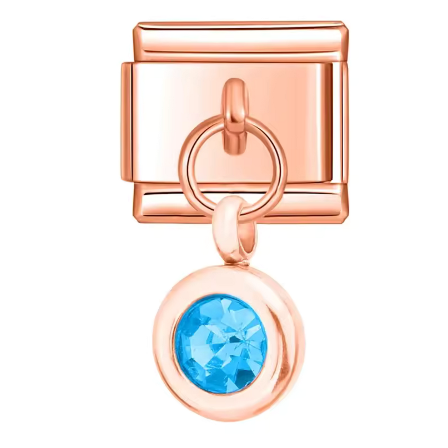 Découvrez ce magnifique charm italien finition couleur or rose, délicatement conçu pour mettre en valeur une pierre de naissance authentique ou colorée. Sa teinte chaude et romantique d’or rose apporte une touche élégante et moderne, parfaite pour célébrer un mois de naissance ou une personne chère à votre cœur.