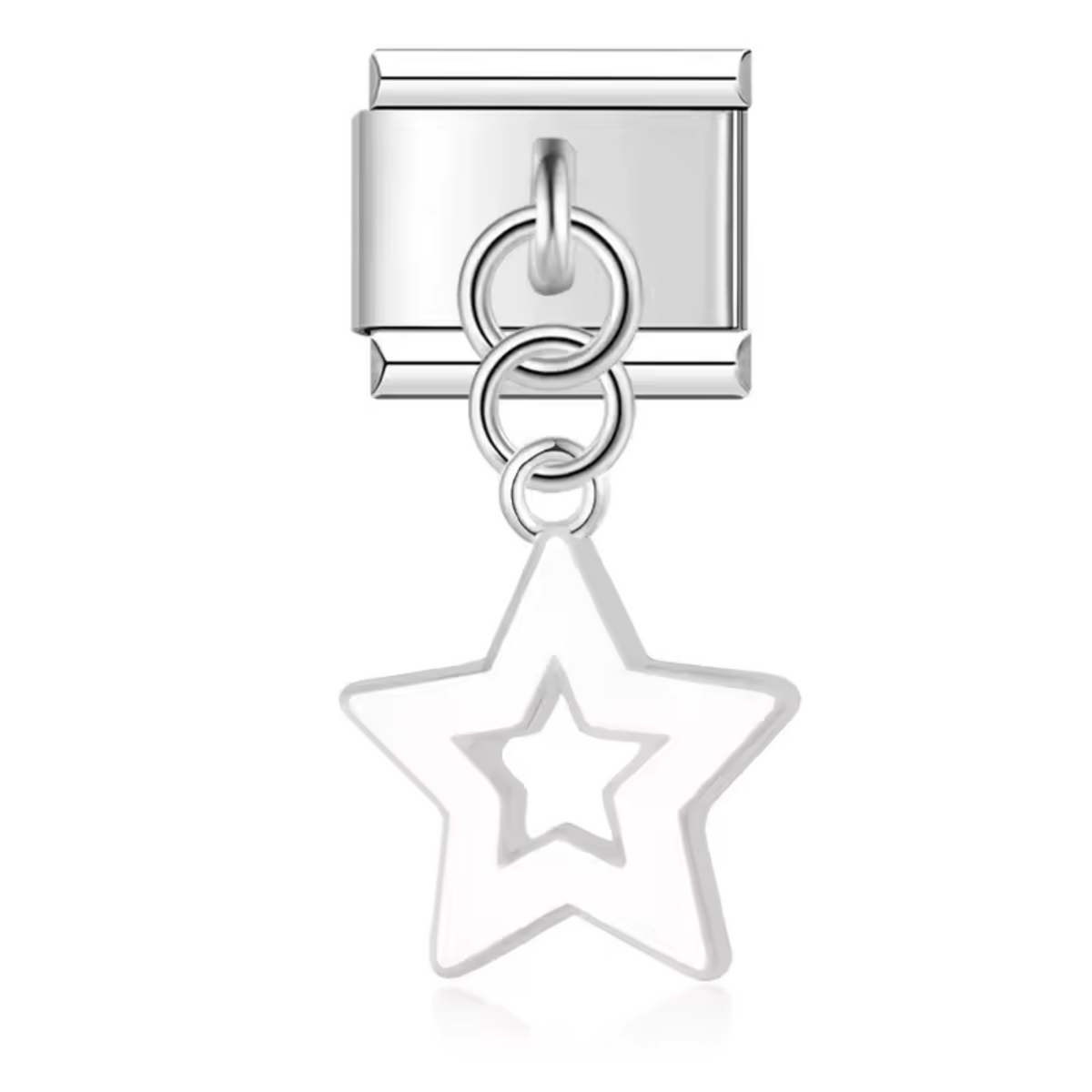 Ce charm italien en forme d’étoile est disponible en cinq coloris élégants : blanc, noir, rouge, bleu et rose, pour s’adapter à toutes vos envies et styles. Fabriqué en acier inoxydable de haute qualité, il allie robustesse et finesse des détails pour un rendu lumineux et moderne. Facile à fixer, il s’adapte parfaitement à nos bracelets composés de 17 maillons extensibles et réglables, convenant à toutes les tailles de poignet. Compatible avec tous nos charms italiens, ce bijou étoilé est parfait pour apporter une touche de couleur et de style à votre bracelet personnalisé.
