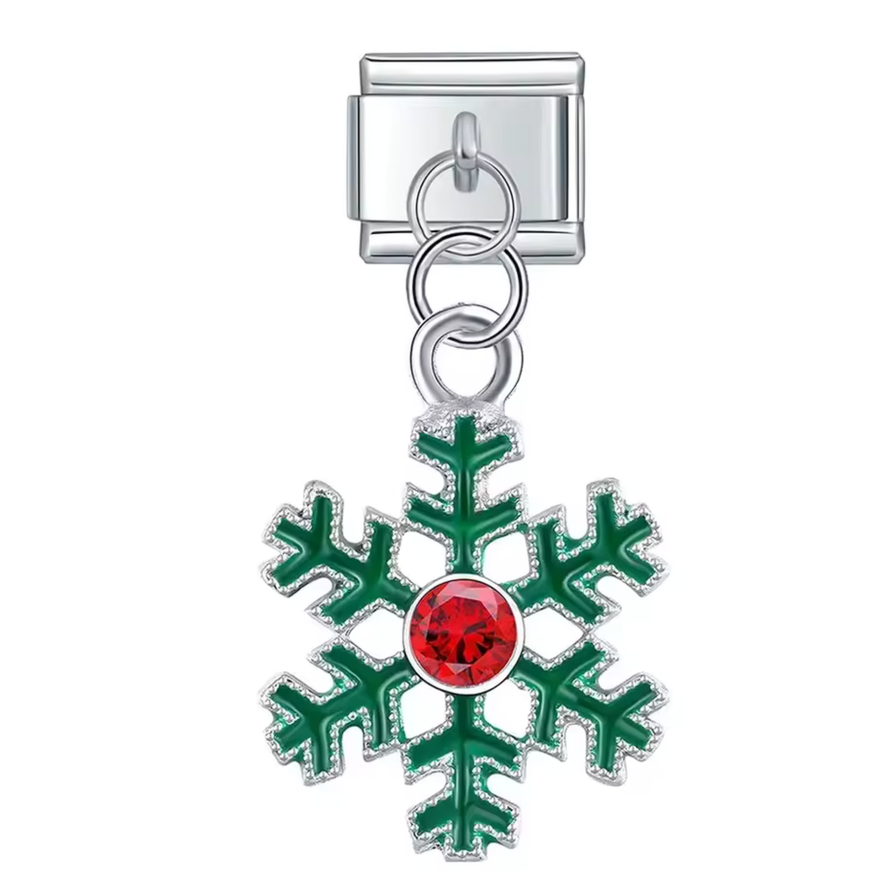 Charm Italien Pendentif – Flocon de Neige Vert et Rouge Argenté