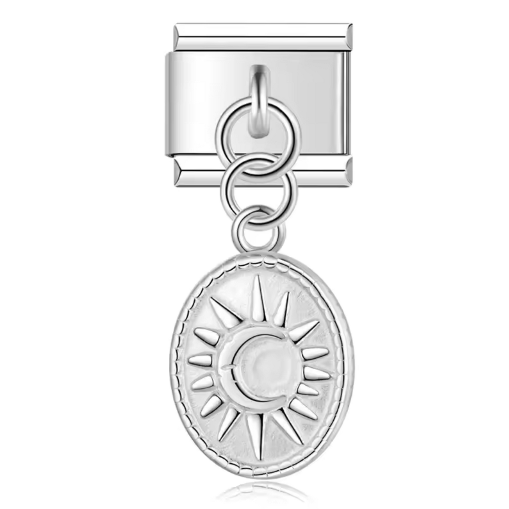 Charm Italien – Pendentif Médaillon Soleil et Lune Argenté