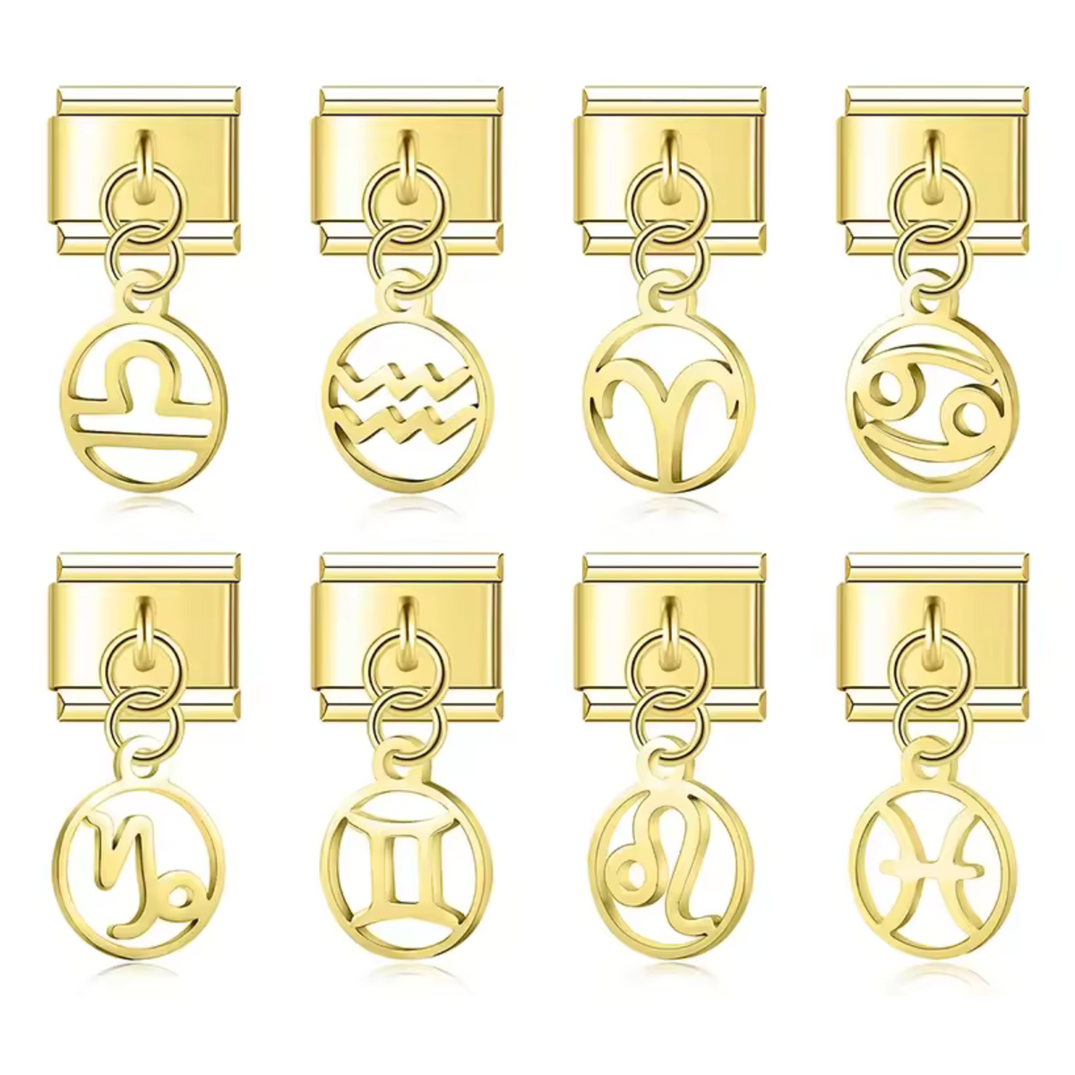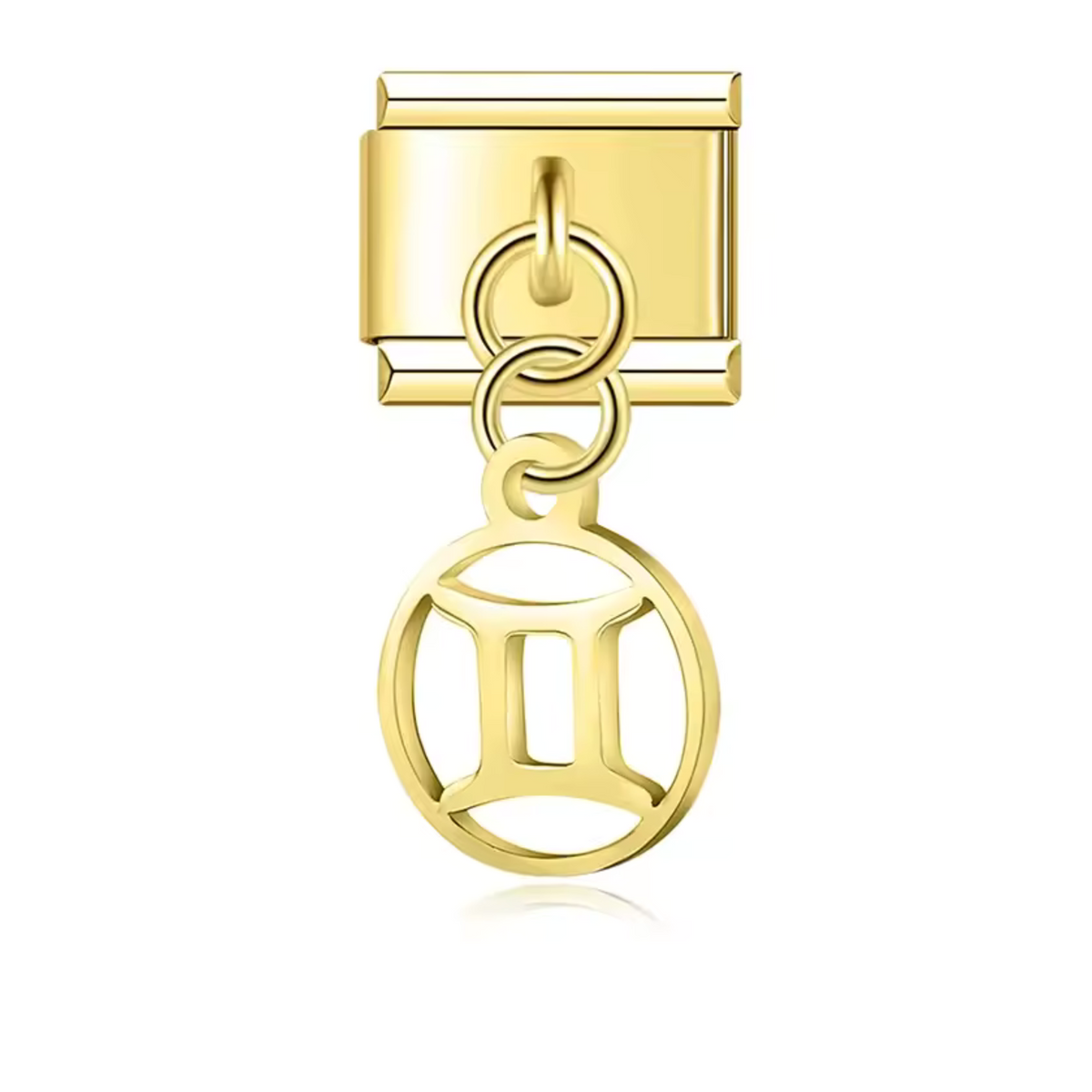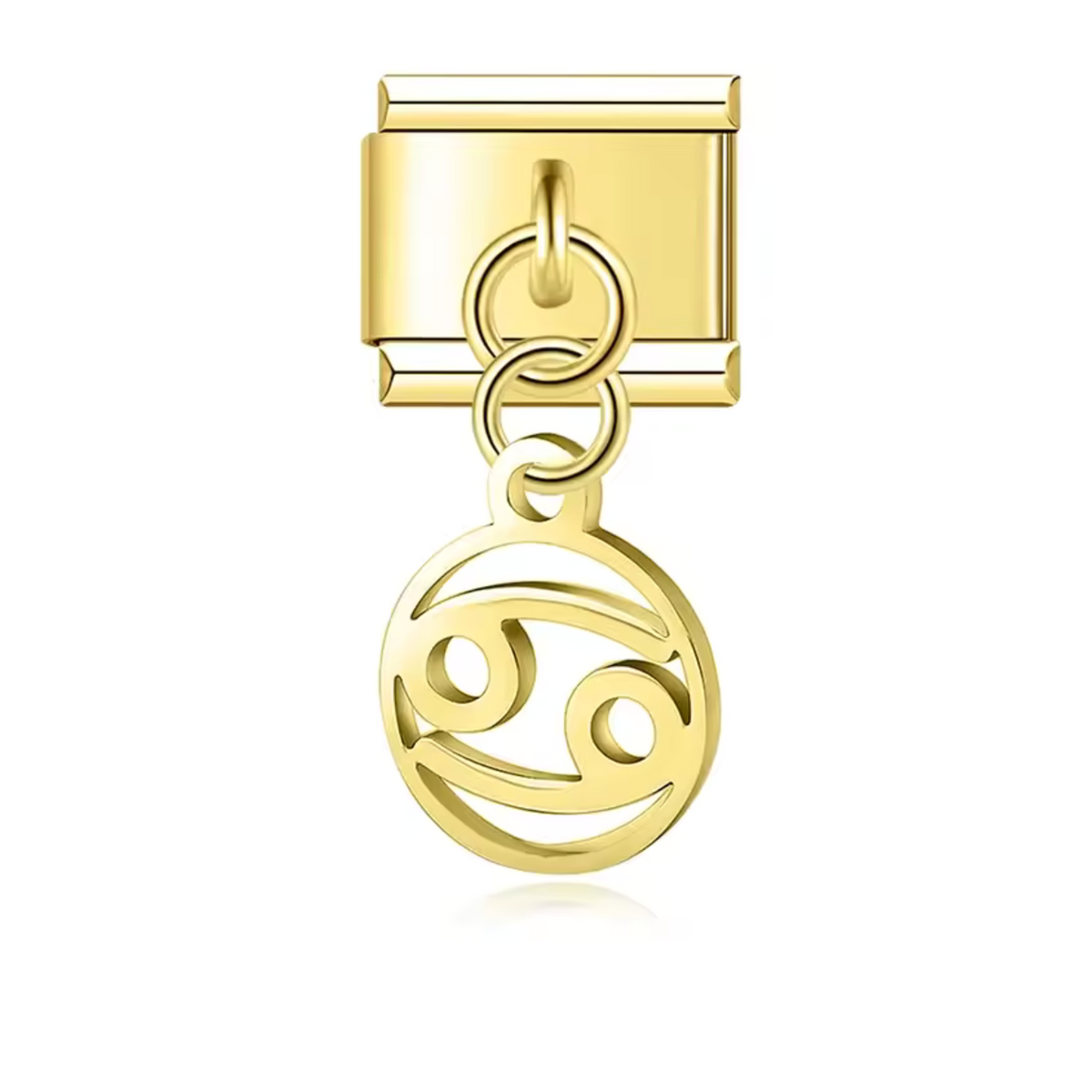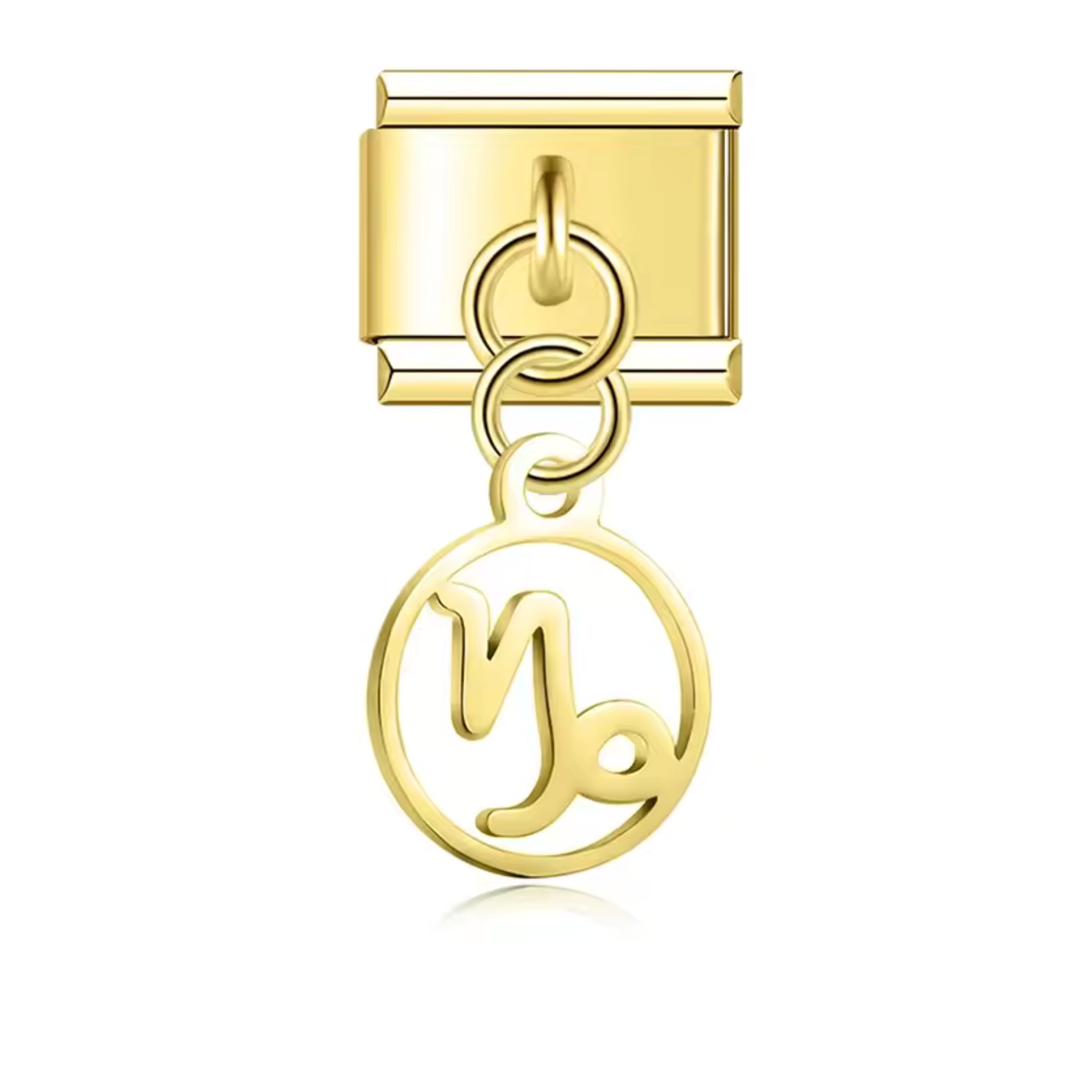 Ce charm italien pendentif en acier inoxydable doré représente un signe astrologique raffiné, idéal pour afficher votre personnalité et votre appartenance zodiacale. Son design élégant et intemporel en fait un bijou parfait pour ajouter une touche mystique et personnelle à votre bracelet. Facile à fixer, il s’adapte parfaitement à nos bracelets composés de 17 maillons extensibles et réglables, convenant à toutes les tailles de poignet. Compatible avec tous nos charms italiens, il est idéal pour personnaliser votre bracelet avec une note céleste et unique.