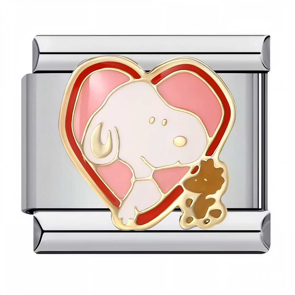 Ce charm italien élégant présente Snoopy niché dans un cœur rouge vibrant, accompagné de Woodstock à ses côtés, pour un duo tendre et complice. Réalisé en acier inoxydable avec des finitions argentées et dorées, il allie brillance et raffinement tout en garantissant robustesse et qualité. Facile à fixer, il s’adapte aux bracelets composés de 17 maillons extensibles et réglables, adaptés à toutes les tailles de poignet. Compatible avec tous nos charms italiens, ce bijou apporte une touche romantique et chaleureuse à votre bracelet personnalisé.