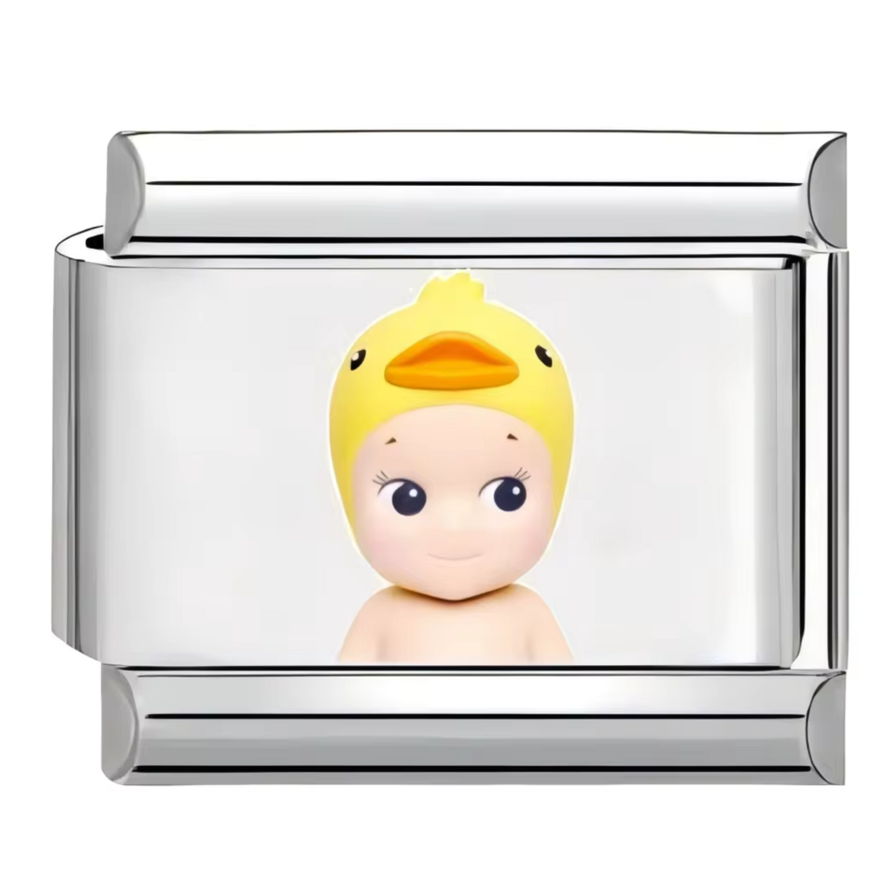 Ce charm italien adorable représente Sonny Angel coiffé d’un petit bonnet canard jaune vif, apportant une touche ludique et colorée à votre bracelet. Confectionné en acier inoxydable argenté de haute qualité, il séduit par ses détails précis et sa finition brillante qui plairont aux fans de ce personnage charmant. Facile à fixer, il s’adapte parfaitement à nos bracelets composés de 17 maillons extensibles et réglables, adaptés à tous les poignets. Compatible avec tous nos charms italiens, ce bijou est idéal pour ajouter une touche joyeuse et pleine de fraîcheur à votre collection.