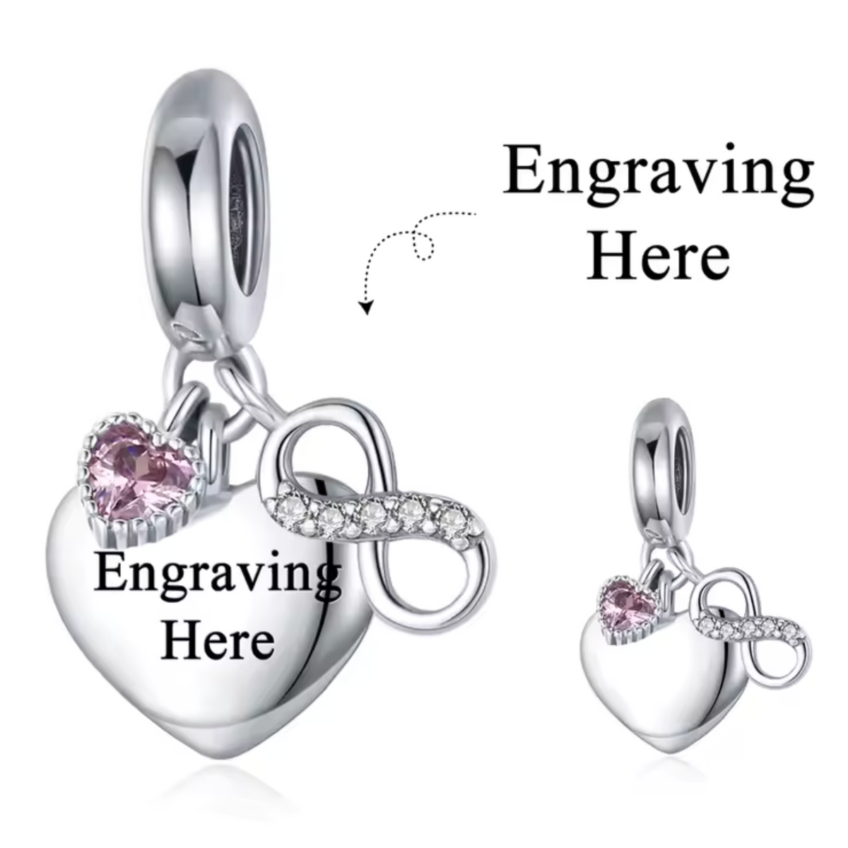 Charm Cœur Personnalisé avec Gravure – Cœur Rose et Symbole Infini