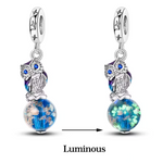 Charm Pendentif Hiboux sur Globe – "Glow in the Dark"