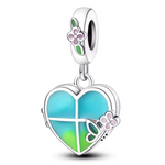 Charm Pendentif Cœur Bleu-Vert avec Fleur