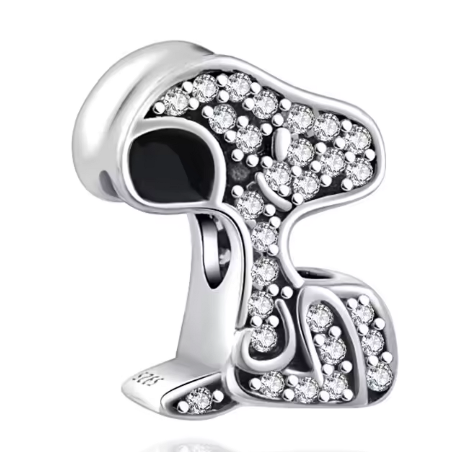 Découvrez ce charm délicat représentant Snoopy, finement sculpté en argent 925 avec une finition argentée éclatante, sublimé par des strass étincelants. Ce bijou incarne la tendresse, la joie de vivre et l’élégance discrète de ce personnage iconique.